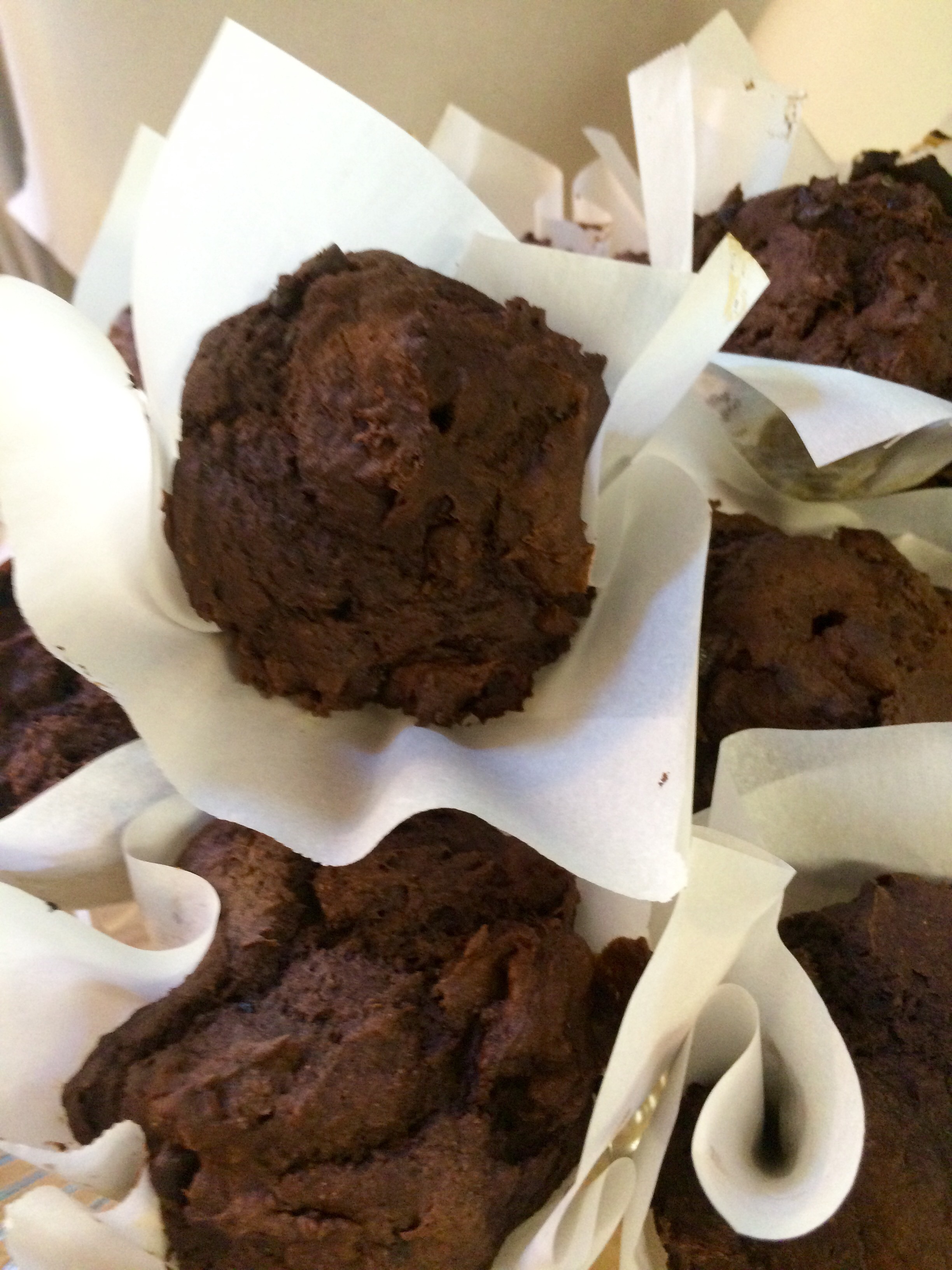Alright, that’s all you need. For reals. It’s that easy. Combine all of your ingredients together working to get everything incorporated. Your batter will be thick- it’s supposed to be. If you need to you can add a dash of water to make it stirrable but you really don’t have to. Divide your batter into 12 parchment lined muffin cups and bake at 375 degrees for about 30 minutes. Voila! You’re done!