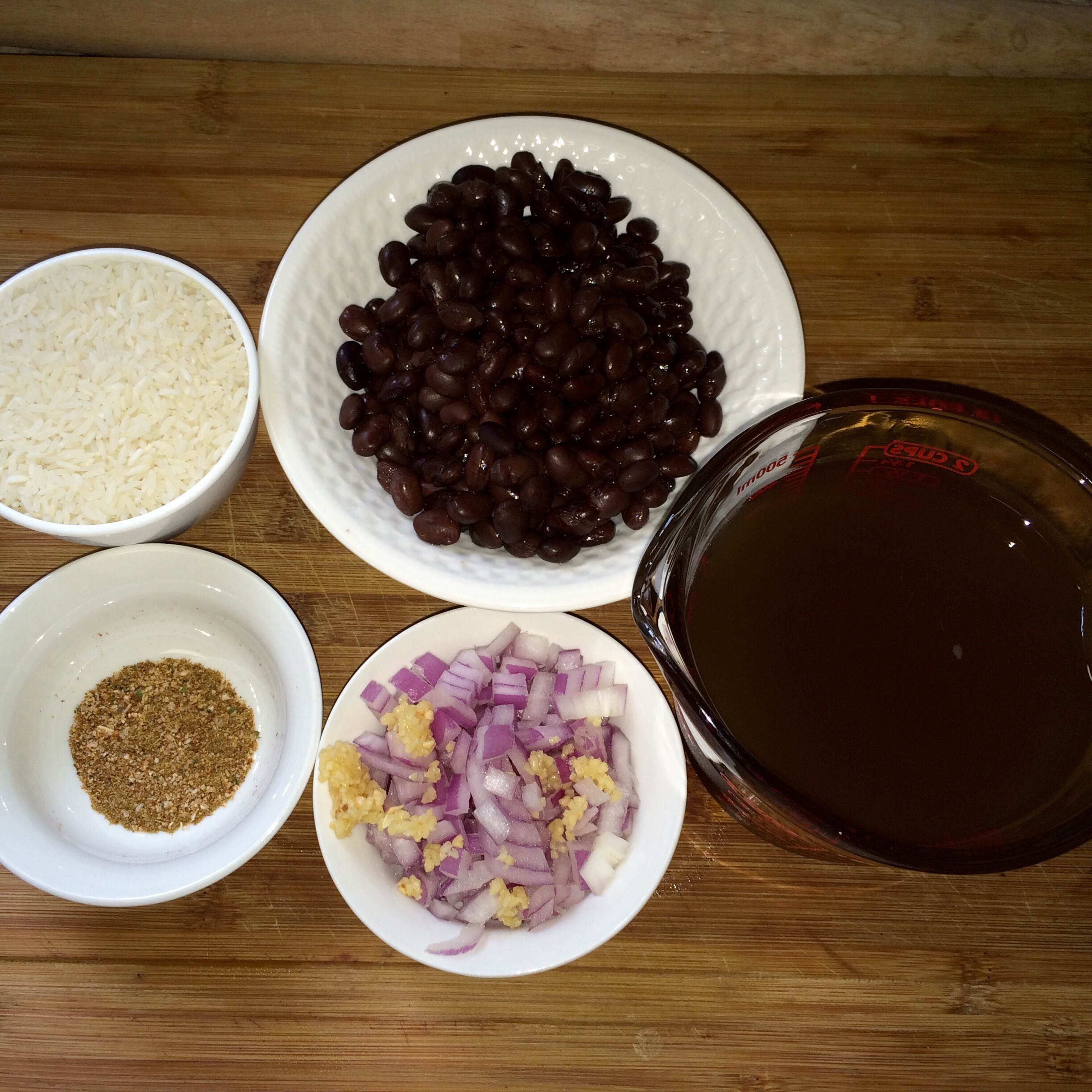 When your chicken only has about 30 minutes left you can go ahead and start your black beans and rice.