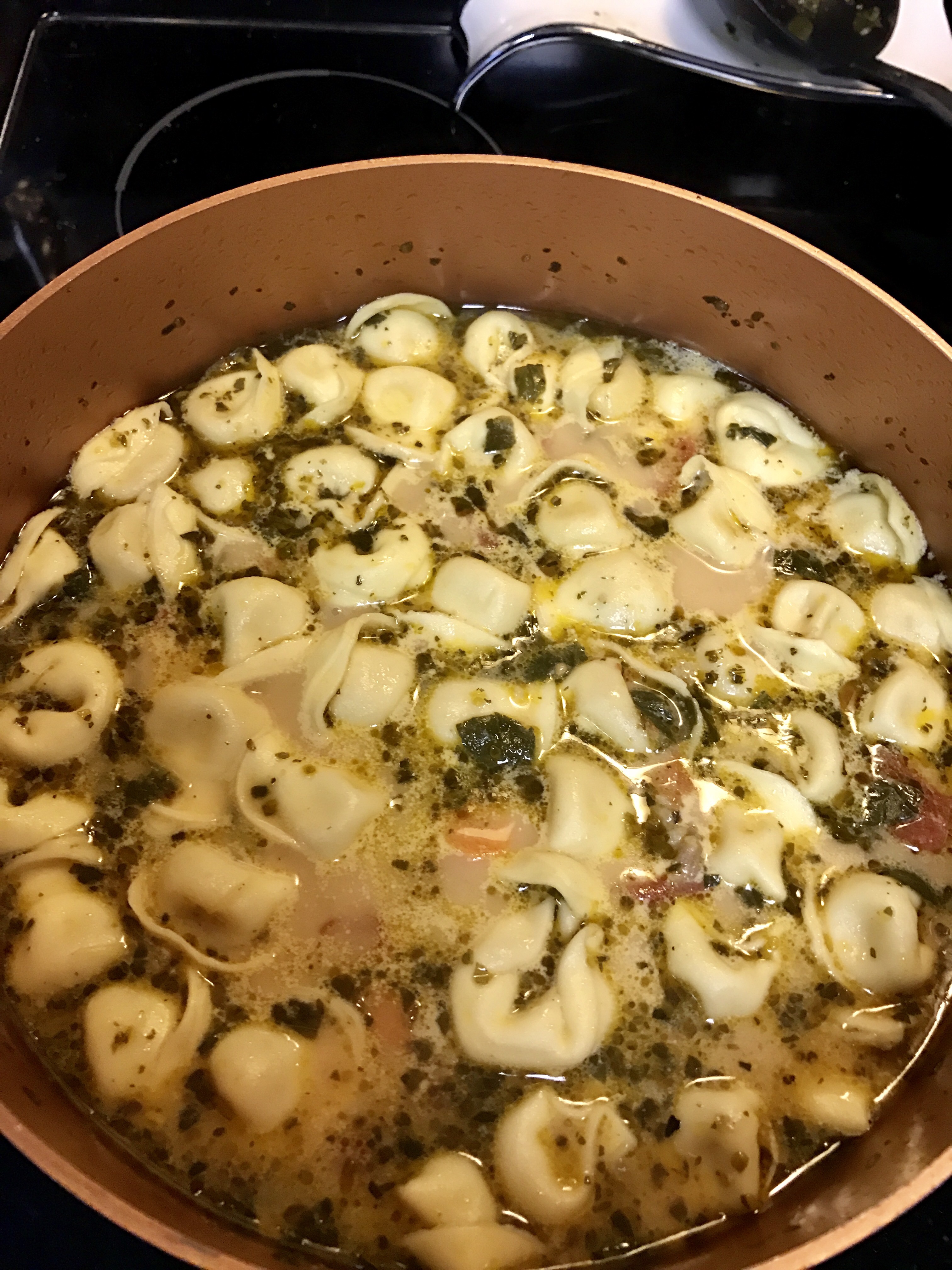 - Bring soup to a rolling boil and add tortellini. Cook uncovered for 4-5minutes or until Tortellini are cooked through.