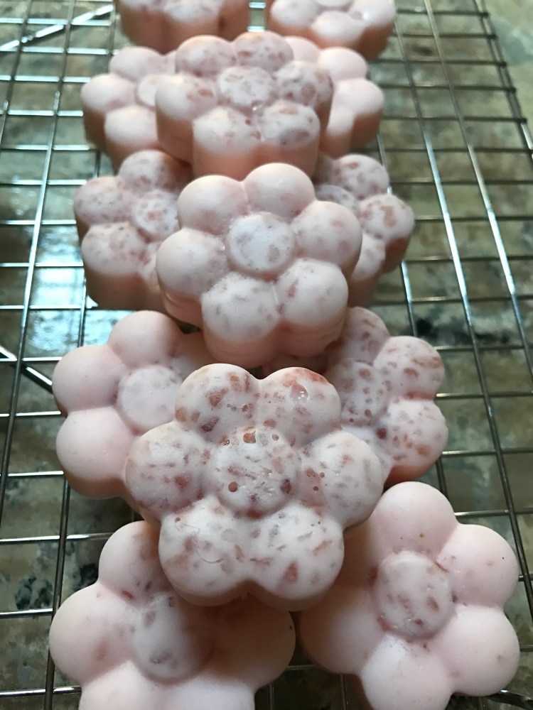 These soaps were much thinner than my oatmeal soap so they were ready to go to the cooling rack in 1 hour. I still let them dry for about 2 hours before I packaged them to ensure there was no moisture. They look so pretty all packaged up!