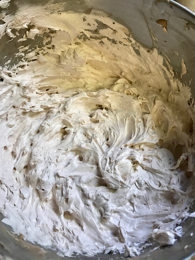 The instructions could really not be any easier. Combine all ingredients except cocoa powder and cornstarch in a microwave safe bowl and microwave in 30 second intervals until everything is melted. Remove bowl from microwave and stir in cocoa powder and cornstarch. Let mixture return to room temperature (which can take a few hours) or place it in the refrigerator to speed things along. When the oil mixture has turned opaque and is thickened but not solid it’s time to whip. Add mixture to a chilled mixing bowl and beat on high for 5 minutes or until super fluffy. You may have to scrape the sides of the bowl a few times to make sure you have gotten all of your frosting fluffed. A KitchenAid works really well for this, but any high powered mixer will work.