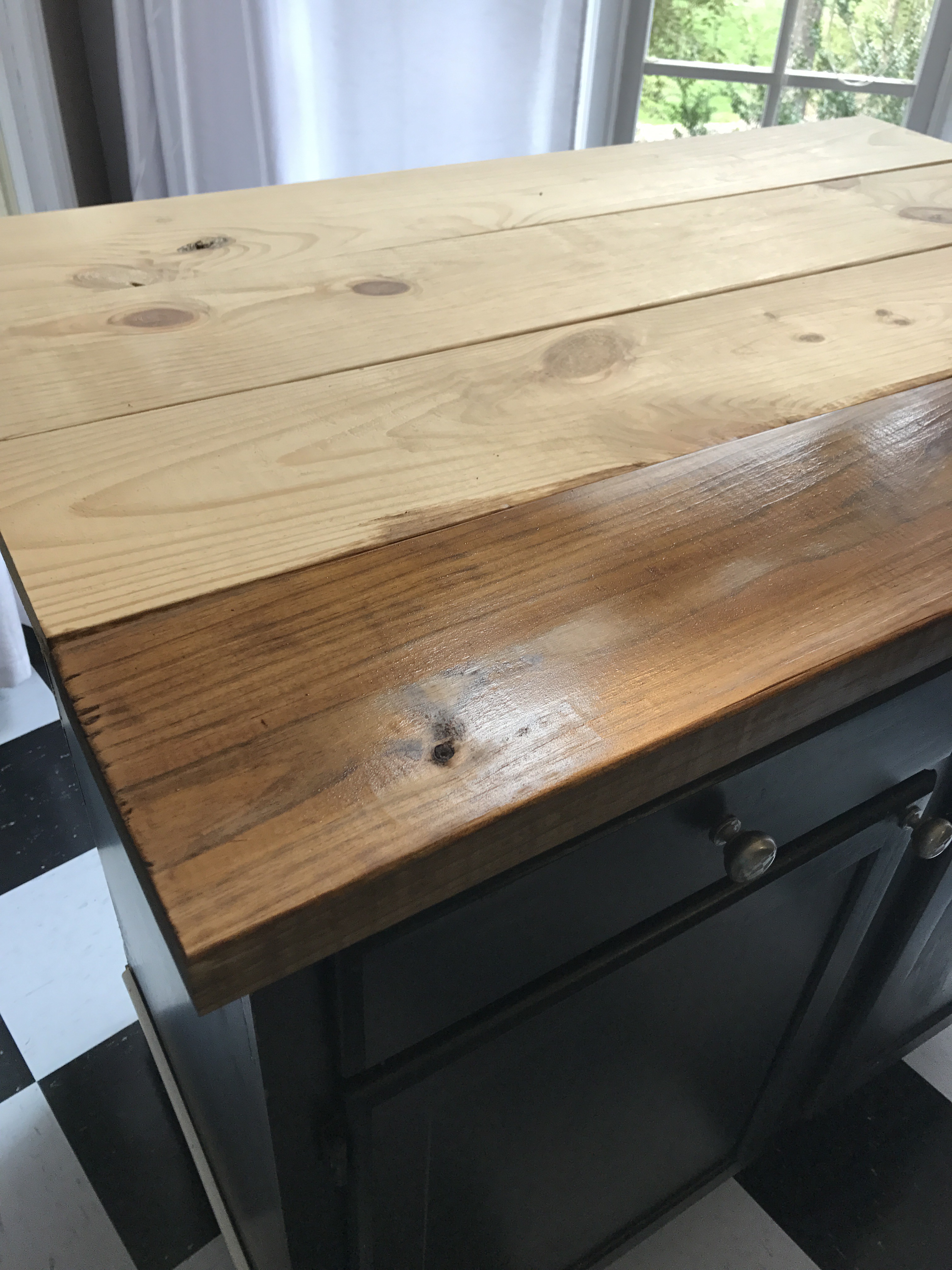 The cool thing about this island top is it’s easy to make, cost effective, and you can customize the color. My island is a pretty standard length and width, 25×42, but if you have a larger island you can easily change the board dimensions to fit your width.